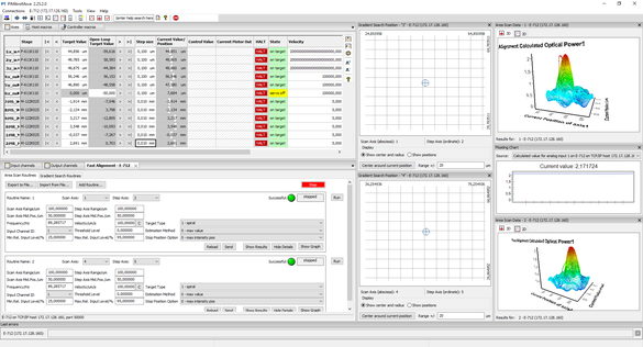 Every PI controller is delivered with an extensive software package. The delivered user programs support the user in setting up and parametrizing the overall system. For the execution of motion commands and additional optimizations, no additional programming effort is necessary. Intuitively operable user interfaces, comprehensive online help pages, graphic visualizations, and simple automation possibilities support a quick introduction and trouble-free usage.