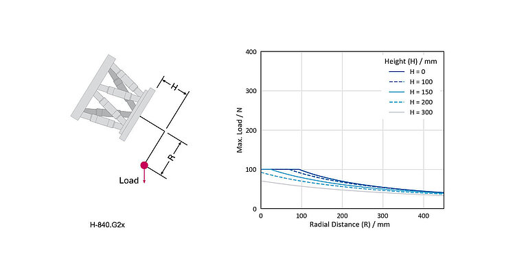 The simulation software simulates the limits of the workspace and payload of a hexapod. Therefore, even before purchasing, you can check whether a particular hexapod model can handle the loads, forces, and torques occurring in an application. For this purpose, the simulation tool takes the position and motion of the hexapod as well as the pivot point and several reference coordinate systems into account.