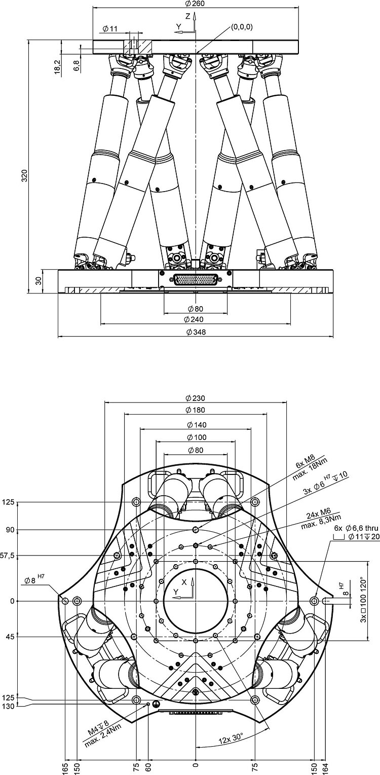 The parallel-kinematic design for 6 degrees of freedom makes it significantly more compact and stiffer than comparable serial kinematic systems. The advantages over serial, i.e., stacked systems, are mainly the much better path accuracy and repeatability. In addition, the moved mass is lower and allows improved dynamics which is the same for all motion axes. Cable management is not a problem because cables are not moved.