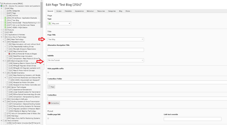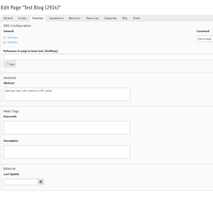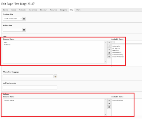- In tab Blog the author and the Tags (grey ones) can be added.