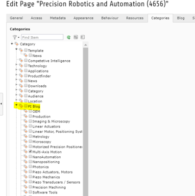 - In tab Categories the Blog Categories (blue ones) can be added.