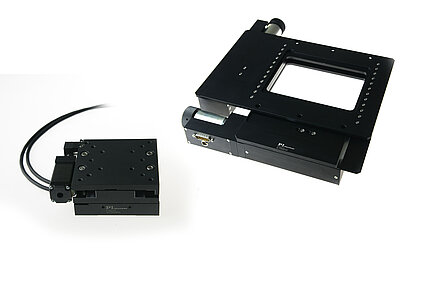 Schnell verfügbares XY(Z)-Positioniersystem aus zwei V-417 Positionierern mit G-901 ACS-Controller inklusive ACS-Treibermodul, L-412 als optionale Z-Achse.